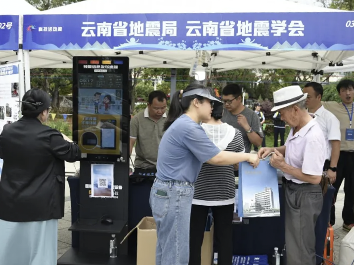 好的,主持人。本届科技活动周云南省地震局党组高度重视,党组成员、副局长马宏生出席活动。公共服务处组织云南地震台、云南省地震应急服务中心,联合省地震学会、文山州地震局在活动现场布设防震减灾科普展台,通过地震预警终端和测震仪等专业设备现场演示、发放资料和文创产品、答疑讲解、线上扫码答题等方式开展防震减灾科普宣传,并在现场中央大屏滚动播放防震减灾科普短视频。启动仪式期间,出席活动的领导专家也到防震减灾科普展位进行了参观指导,对防震减灾科普成效给予了肯定。