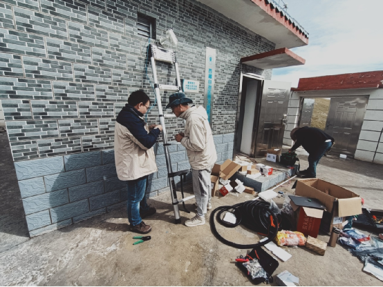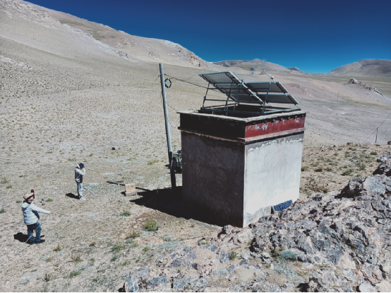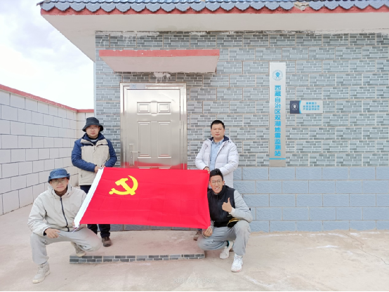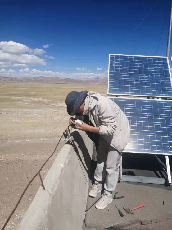 完成双湖县地震预警台站仪器安装 (右上:段胜朝 左上:李文涛) 叶泵负责林芝市、那曲市等地8个地震监测台站仪器设备的架设。