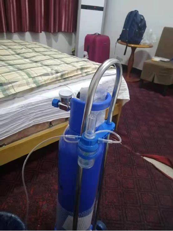 房间内常备的氧气罐 段胜朝在自己的日记中写道:“为了西藏的防震减灾事业,为了早日实现西藏的地震预警,付出都是值得的。想到这些,睡觉也睡得安稳舒服。(虽然每晚睡觉还是需要一个氧气袋的帮助)”