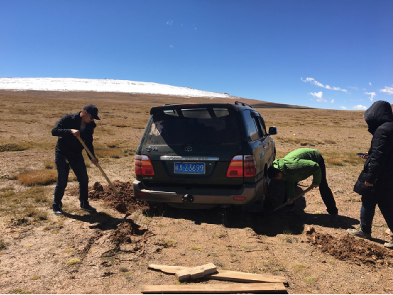 车陷泥地 后来,叶泵说:“高原缺氧、九月飞雪、广阔的无人区等,都给了我深刻的印象,高原工作是艰苦的。然而,我更多的记忆是茫茫的草原、雪白的念青唐古拉山、高飞的神鹰、悠闲的藏羚羊以及善良的人们,西藏太美了!” 出发的时候,西藏自治区地震局给叶泵、段胜朝、李文涛等援藏技术人员戴上了代表藏族最高礼遇的哈达。