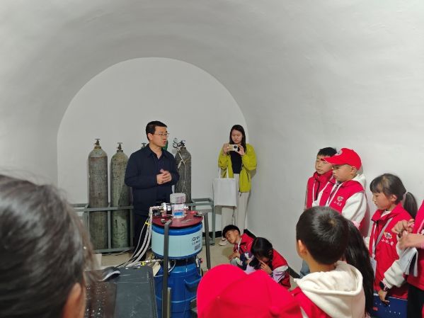 图说:小记者们走进观测山洞 小记者们在昆明中心站相关负责同志的引领下,走进观测山洞,近距离观看地震监测仪器,并在实时监测数据显示屏前专注聆听监测原理讲解。在昆明中心站地震监测仪器陈列室,小记者们饶有兴致地一起探秘地震监测仪器的前世今生,感悟深厚的防震减灾历史文化积淀。