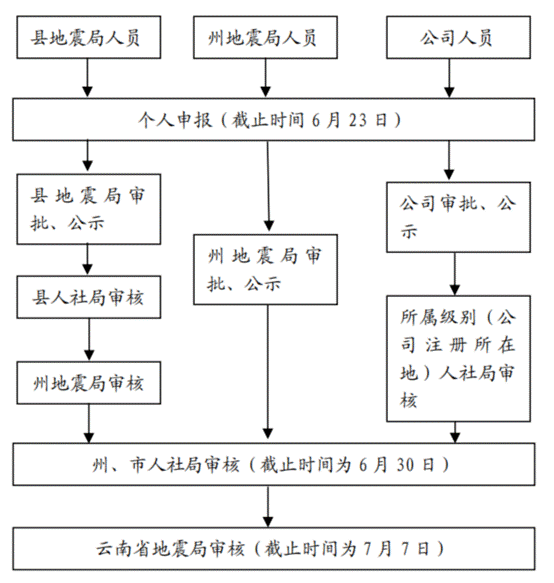 3.主管部门审核推荐。各州、市地震局(防震减灾局)负责审核并将辖区内申报人员情况进行汇总,初步审核申报手续是否齐备、送审材料是否规范,是否符合基本条件,汇总后按要求报送属地人力资源和社会保障部门审核后,报省地震局职称改革办公室(人事教育处)。