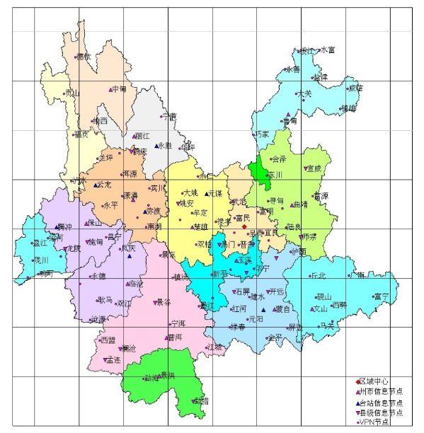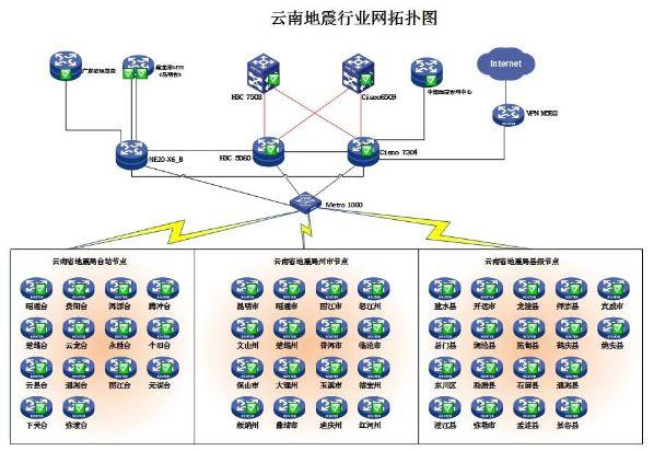 云南省地震信息行业网络(以下简称“行业网”)2007年初步建设完成,2008年1月正式投入使用。党的十八大以来,行业网逐步发展为地震行业最重要的数据传输通道,承载了地震观测数据传输和存储、地震速报、协同办公系统、视频会商系统、数据共享服务等核心业务,正在建设的地震烈度速报和预警工程也将通过地震信息行业网络传输数据。 目前,行业网共建有信息节点49个,其中省级区域中心1个,州市级节点16个,县级节点18个,直属台站节点14个,均匀分布在云南省各地区。其他未建设信息节点的县级地震部门可通过VPN方式接入行业网。  云南地震信息行业网络信息节点分布图 党的十八大年以来,云南省地震局采取了多种形式推进地震数据共享与信息服务。2013年实现云南省地震系统办公自动化,2017年推进自动化办公系统改版升级,优化现有的管理组织结构,调整管理体制,在提高效率的基础上,增加协同办公能力。 2014年建设了基于地震信息行业网络的短临跟踪技术支撑平台系统,为我省州市级以上地震部门开展震情视频会商提供保障。2016年完成云南省地震局门户网站改版任务,改版后的云南防震减灾网不仅更好地提供了政务信息、地震灾情、地震科普、互动交流等信息服务,还增加了移动APP,将公共服务和业务需求有机结合。 |
