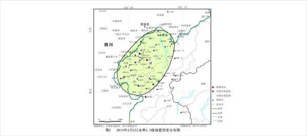 2014年4月5日永善5.3地震烈度图 Ⅵ度区:东北起永善县溪洛渡镇大坪子—颜家坝一带,西南至务基镇虫林湾—黄华镇箐林一带;东南自马楠乡羊槽集—大河沟一带,西北到四川省雷波县五官乡和平村附近,面积530平方千米。 本次地震造成云南灾区直接经济损失44510万元。