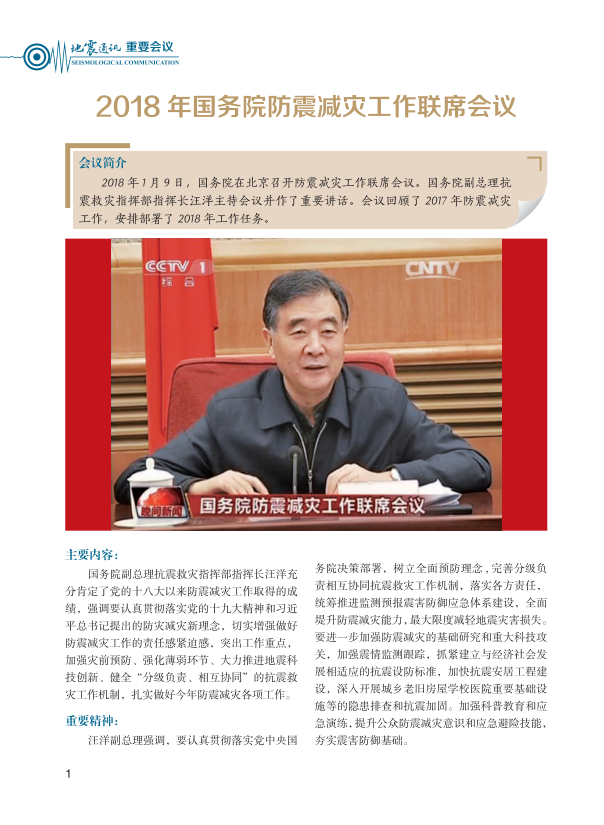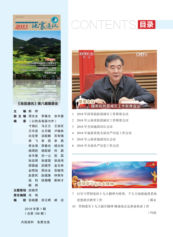 《地震通讯》2018年第一期