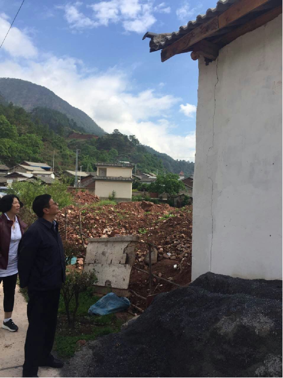 2016年5月19日上午,地震系统“5•18”云龙5.0级地震现场指挥部陈勤指挥长在怒江州地震局和兰坪县政府相关负责人的陪同下,赴兰坪县调查了解灾情。