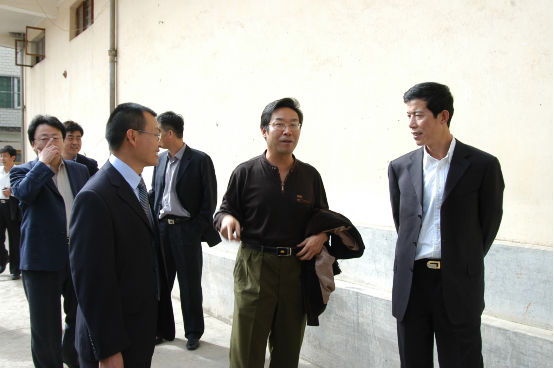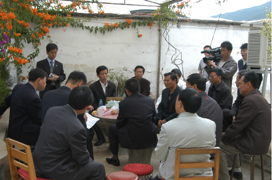 2006年11月时任中国地震局局长陈建民与台站职工进行交流