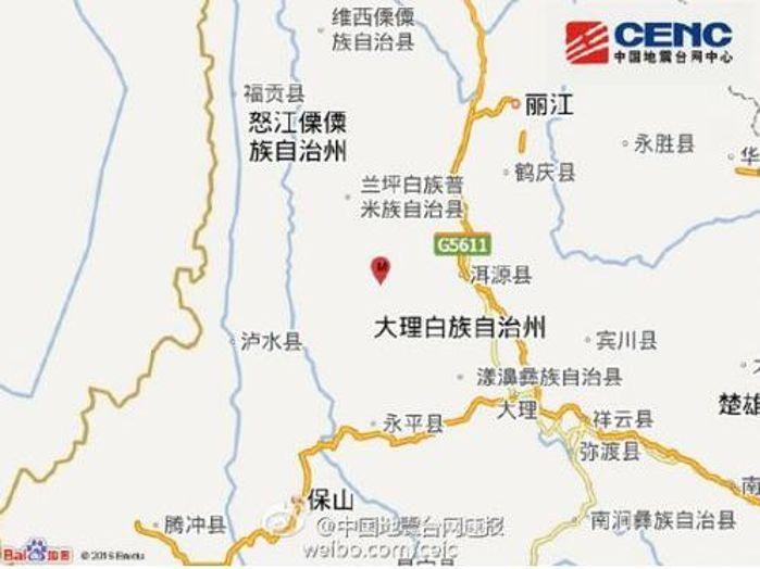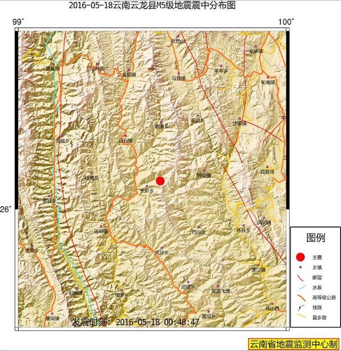 中国地震台网正式测定:05月18日00时48分在云南大理州云龙县(北纬26。