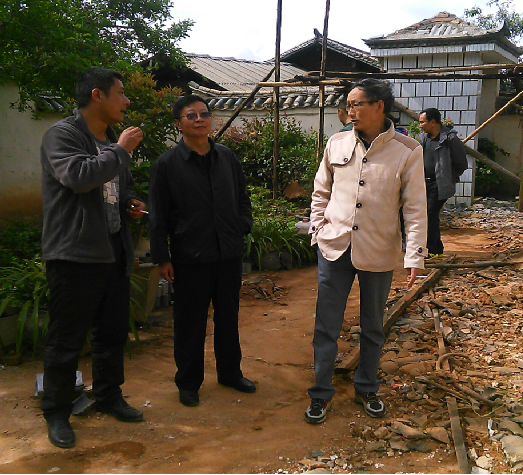 01、剑川县地震局局长段跃全(前排右一)陪同领导深入查灾 |