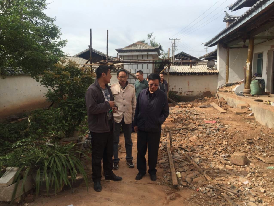 张启明局长陪同省地震局陈勤副局长一行到剑川县象图乡查看灾情