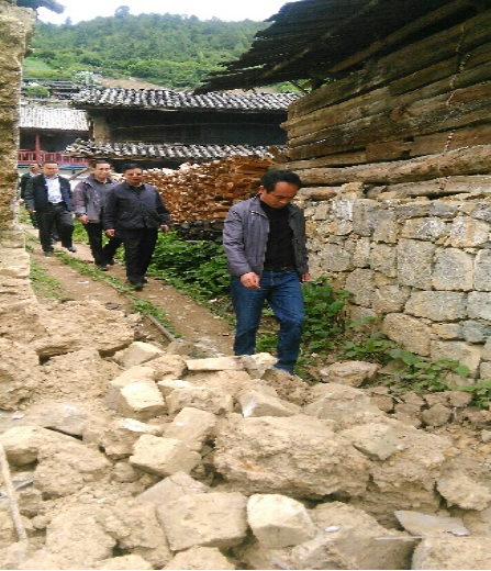 陈勤副局长一行深入到本次地震重灾区剑川县象图和弥沙两个乡指导抗震救灾工作和调查了解灾情,并听取了剑川县人民政府关于此次地震发生后的应急处置和抗震救灾工作开展的情况汇报。