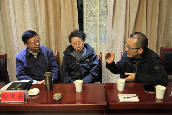 3月27日晚,陈勤指挥长在前方指挥部与民政厅救灾救济处副处长肖丽明,云南诚泰保险党委委员、总经理助理李年生就本次地震震情灾情、地震保险相关理赔事宜进行了沟通交流。