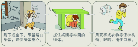 ◆ 避震要点(2)躲避地震时身体应采取的姿势,如下图: