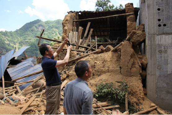 5月19日,云南省地震局副局长、地震系统“5·18”云南巧家5.0级地震现场工作队队长周光全到震中实地察看灾情。