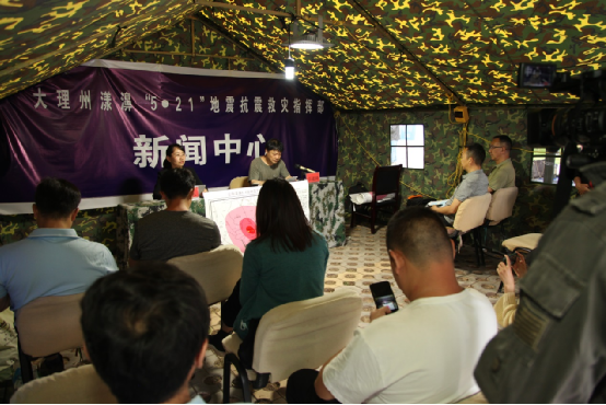 5月25日上午,“5·21”漾濞6.4级抗震救灾指挥部召开新闻发布会,有地震系统现场工作队专题发布云南漾濞6.4级地震烈度图。省地震局副局长、现场工作队队长李飞,现场工作队副队长卢永坤、张启明出席新闻发布会。