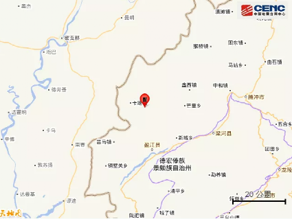云南盈江5.0级地震震中分布图
