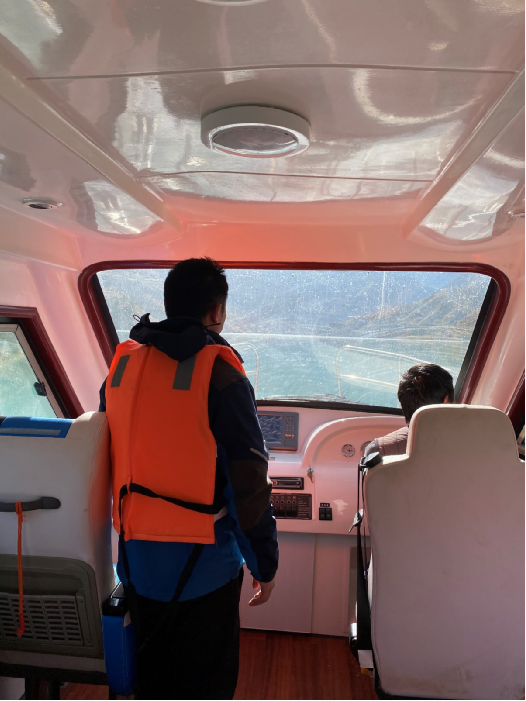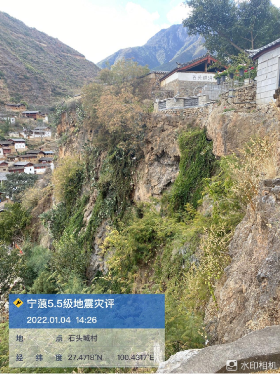 扎美喇嘛寺大雄宝殿前倾 同样冲锋在前的还有灾评组组员刘昌伟。当天,他接到指挥部命令前往玉龙县宝山乡开展圈外震害调查。当他来到现场时傻眼了,前往宝山乡需要坐船,对于习惯坐车的他而言,总归有些不适应。但他已经顾不上那么多,尽管大风吹得人要从岸边掉到水里,他还是开始慢慢挪上踏板、缓缓走进船舱之中。一等他站进船舱,船长就悄悄启动马达,开往此行的目的地石头城村。他们沿着蜿蜒的小路一直往上爬,最终来到村广场上方的崩塌点,开始记录灾情。