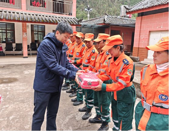 为“冉卡爬”应急救援中心队员发放救援物资